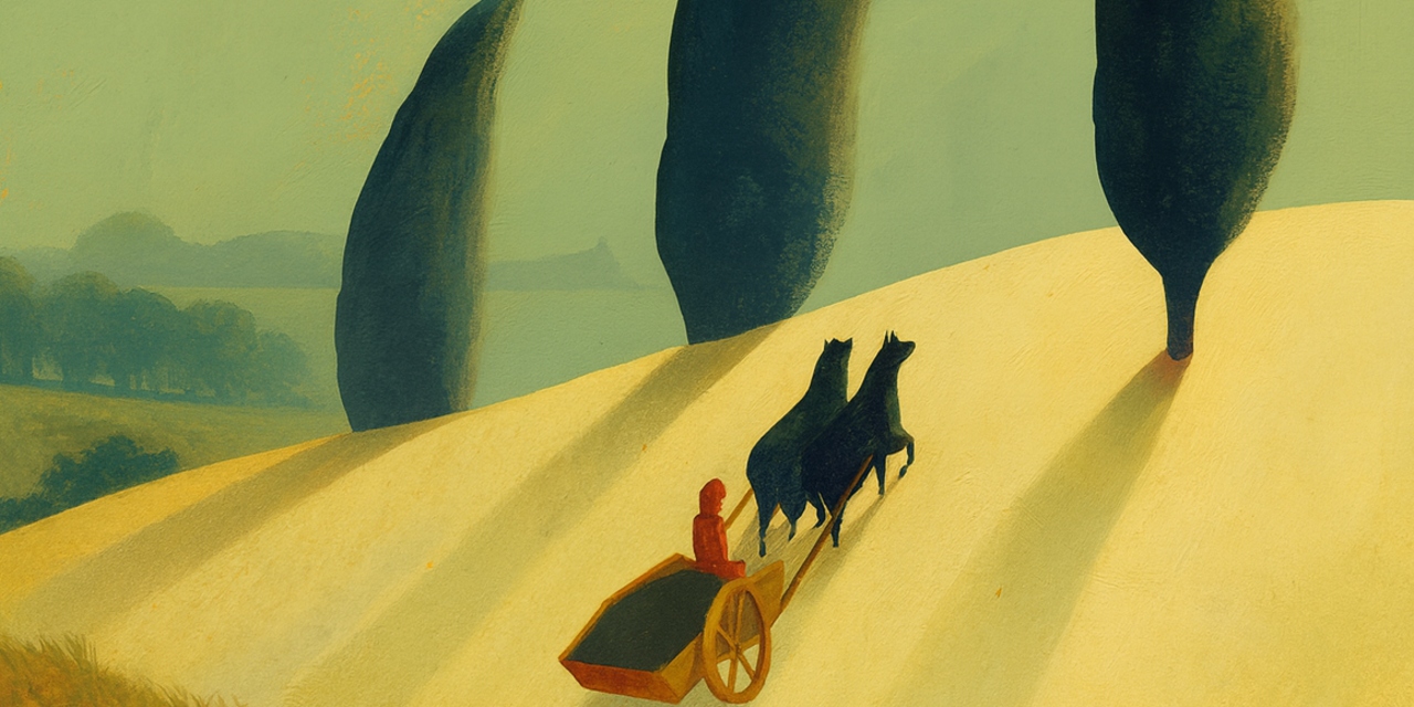 دختر آرام و بیحرکت روی اثاثیه نشسته بود، میز و صندلی با پایه های رو به بالا و تکیهداده به نیمکتی بلوط دور تا دورش بود و گلدان های شببو و کاکتوس و یک قناری در قفس جلوی ارابه؛ احتمالا همهشان اسباب و اثاثیهی خانهای بودند که به تازگی تخلیه شده بود. علاوه بر آن ها، گربهای هم در یک سبد، از درِ نیمهبازِ آن، با چشمان نیمهبسته بیرون را نگاه می کرد و پرندگان کوچک اطراف را زیر نظر داشت. دختر زیبا مدتی بیحرکت سر جایش نشست. تنها صدایی که در آن احوال به گوش می رسید، صدای قناریای بود که در قفس جستوخیز می کرد. دختر سپس با دقت پایین را نگاه کرد: نه به پرنده و نه به گربه، بلکه به بستهای مستطیلی و کاغذپیچشده در بین آن ها.—از کتاب «به دور از مردم شوریده» اثر «توماس هاردی»