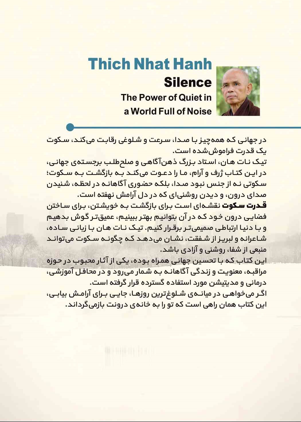 تیک نات هان، نویسنده، شاعر، پژوهشگر نامدار جهانی و راهب بودایی ذن، در اجتماعی رهبانی که در فرانسه بنیان نهاده زندگی می کند. وی که نویسنده کتاب پرفروش نیویورک تایمز به نام خشم، اثر کلاسیک معجزه تمرکز حواس، و کتاب های بی شمار دیگری است، کارگاه های عمومی در سراسر جهان برگزار می کند و عزلتگاه های برقراری صلح با کهنه سربازان را هدایت می کند. وی در سال ۱۹۶۷ نامزد جایزه صلح نوبل شد.رهبر معنوی بوداییان