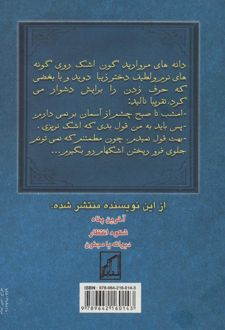 دانههای مروارید گون اشک روی گونههای نرم و لطیف دختر زیبا دوید و با بغضی که حرف زدن را برایش دشوار میکرد تقریبا نالید: امشب تا صبح چشم از آسمان برنمیدارم. پس باید به من قول بدی که اشک نریزی. بهت قول نمیدم، چون مطمئنم که نمیتونم جلوی فرو ریختن اشکهام رو بگیرم... .