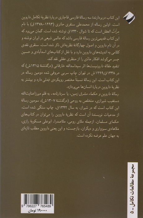 کتاب «داروین در عهد قاجار» شامل سه رسالهی فارسی از دورهی قاجار است که به بررسی و نقد نظریهی تکامل چارلز داروین میپردازد. این کتاب که توسط محمد معصومی گردآوری و تصحیحشده است، نگاهی ارزشمند به چگونگی برخورد اندیشمندان ایرانی آن عصر با این نظریهی نوین و چالشبرانگیز ارائه میدهد. رسالهی نخست با عنوان «مرآت العقل» اثر محمدعلی سنقری حائری است که احتمالا قدیمیترین متن فارسی در این زمینه به شمار میرود. سنقری از منظری کلامی و عقلی به نقد اندیشههای مادیگرایانه داروین میپردازد و با استناد به آثار دیگر عالمان شیعه مانند اسدآبادی و حسین جسر، میکوشد افکار او را رد کند. رسالهی دوم با نام «تنقید مقاله دارونیستها» نوشتهی سیداسدالله خارقانی است. این متن کوتاه اما جدلی، بیشتر بر جنبههای مرتبط با انسان در نظریهی تکامل داروین تمرکز دارد. سومین رساله، «داروین و حکمای مشرقزمین» یا «سردارنامه» اثر میرزا عنایتالله دستغیب شیرازی است. او در این اثر ادعا میکند که میتوان ریشههای نظریهی تکامل داروین را در آثار حکمای مسلمان مانند رازی، ملاصدرا، ملارومی و دیگران یافت و داروین مطلب تازهای ارائه نداده است. مصحح این کتاب، به اهمیت مطالعه و بازنشر آثار تاریخی در حوزهی علم اشاره میکند. از دیدگاه وی این کار میتواند به درک بهتر ما از روشها و دیدگاههای گذشتگان در برخورد با مفاهیم علمی جدید کمک کند. همچنین تاریخ علم میتواند بینشی فلسفی و معرفتشناسانه درمورد مفهوم، روش و تعریف علم به ما بدهد. معصومی تأکید دارد که با توجه به کمبود آثار تخصصی درمورد نظریه تکامل در ایران آن دوران، لازم است آثار الهیاتی، دینی و کلامی که به این موضوع پرداختهاند نیز مورد مطالعه قرار گیرند تا بتوان تلقی کلی اندیشمندان ایرانی از نظریه داروین را درک کرد. در مجموع، کتاب «داروین در عهد قاجار» سندی با ارزش از تلاشهای اولیهی اندیشمندان سنتی ایرانی برای روبهرو شدن و واکنش نشان دادن به یکی از مهمترین نظریههای علمی مدرن یعنی تکامل است که دیدگاههای متفاوت آنان را در این زمینه به نمایش میگذارد.