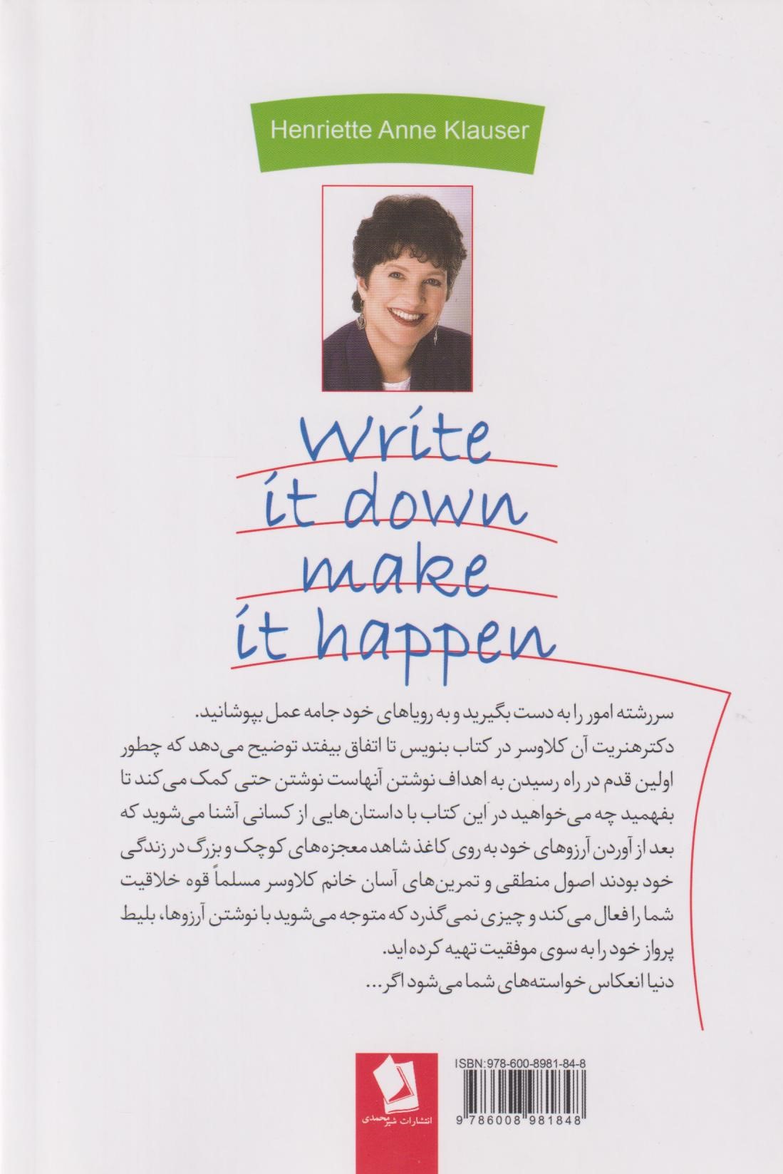 کتاب "بنویس تا اتفاق بیوفتد" یکی از کتابهای خود کمک یاری هست که من مدتیه تمرین هاش رو انجام میدم و عجیب که اثرات خوبی هم ازش دیدم. حالا سوای قانون جذب و این حرفها یکی از پیشنهادات خیلی خوبی که کتاب بهتون میده نوشتن اهداف و آرزوهاتون روی کاغذ هست. برای من وقتی اهدافم رو روی کاغذ اوردم تازه اون موقع بود که شکل واقعی به خودشون گرفتن و یه جورایی ارادهی منو برای رسیدن بهشون قوی ترکردن تعیین هدف ، تمرکز روی نتیجهی کار و داشتن تصویری روشن از آنچه در زندگی به دنبالش هستید میتواند باعث تحقق رویاهای شما شود
