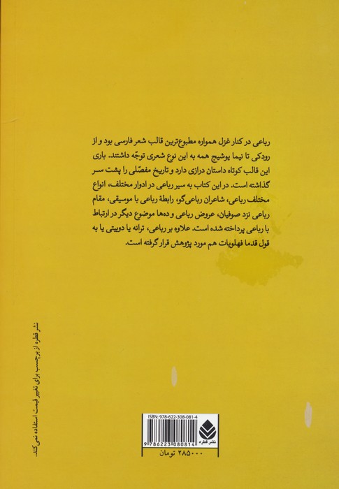 درود. اغلب آثار استاد شمیسا کاربردی و خواندنی هستند. من به دلیل دیر به باز آمدن چاپ مجدد این اثر؛ مجبور شدم به سختی کتاب دست دوم آن را بیابم. اگر دوستدار و علاقمند به ادبیات فارسی بی تردید این اثر خوب بسیار برای شما مفید است و سیر قالب رباعی و چگونگی شکل گیری این قالب ادبی را در طول تاریخ ادبیات، به خوبی برای شما تبیین میکند. هرگز در خرید این اثر تردید به دل راه ندهید.