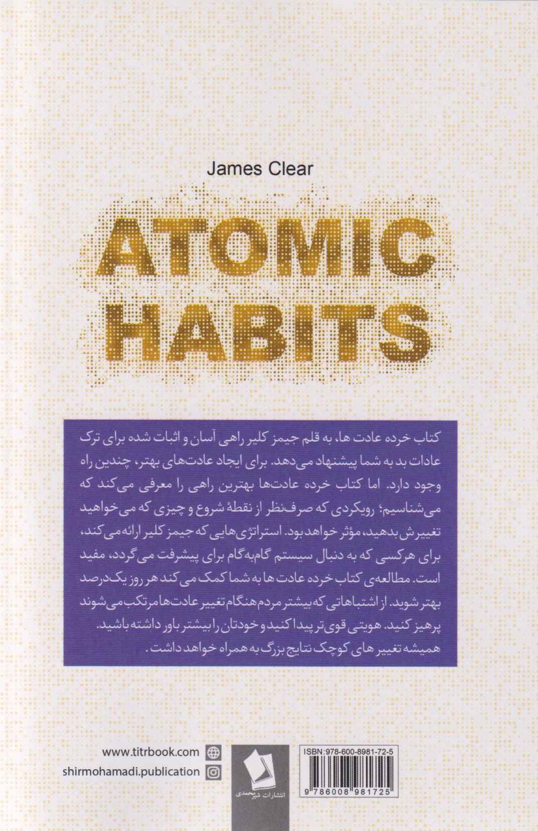 من کتاب عادتهای اتمی رو دارم . راستش با اینکه الان حدود یک ماه از خریدش گذشته فعلا فقط حدود ۶۰ صفحه خوندم . نمیدونم شاید مثلا برای سنهای بالاتر مثلا ۲۵ سال جالب باشه ولی من به عنوان یه دختر ۱۹ ساله زیاد علاقه ای به خوندش پیدا نکردم .