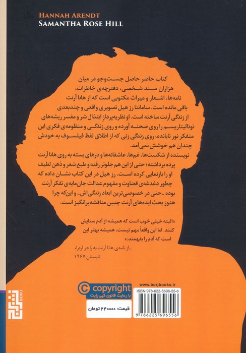اندیشههای هانا آرنت در سالهای اخیر بسیار مورد استقبال خوانندگان ایرانی قرار گرفته است. ترجمههای مختلفی که از آثار او انجامشده، شاهدی بر صحت گفتهی ما است، اما کتاب زندگینامهی او ما را با زوایای دیگری از شخصیت آرنت روبهرو میکند و خاطرات و لحظات خصوصیاش را پیش چشممان نمایش میدهد. نویسندهی کتاب -که خود استاد اندیشهی سیاسی و معاون «مرکز علومانسانی هانا آرنت» در کالج بارد است- با جمعآوری اسنادی مهم، روایتی جذاب از زندگی پرفرازونشیب وی ارائه کرده است. حاشیههای زندگی آرنت، هم بهواسطهی از سر گذراندن تجربهی جنگ جهانی دوم و اخراجش از دانشگاه، و هم بهخاطر ارادتی که به استادش هایدگر داشت، همواره مورد بحث بوده است؛ اینبار اما همگی این تجربیات و چیزهایی بیشتر از این، اصل موضوع قرار گرفته است. اینبار قرار است با هانا آرنت شاعر ملاقاتی داشته باشیم، هانا آرنت عاشق. جذابیت چنین زندگینامههایی این است که میتوانیم به مدد آنها، اندیشههای یک متفکر را در بستر تاریخچهی زندگیاش و شرایط سیاسی، اجتماعی و تاریخیای که در آن زیسته است درک کنیم. اگرچه زندگی این فیلسوف سیاسی معاصر، ناگفتههای بسیاری دارد، اما با اینحال، کتاب به شکلی مختصر و موجز به اصلیترین عناوین خود پرداخته است. سامانتا رزهیل هنوز هم به تحقیقاتاش دربارهی زندگی و اندیشهی آرنت ادامه میهد و این خود حکایت از آن دارد که نباید زندگی و زمانهی چنین متفکری را دستکم گرفت.