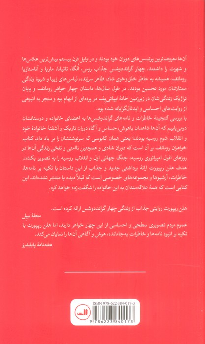 تاریخ سنگین روسیه را به طور جذاب و دلنشینی بیان کرده و اطلاعات جالبی رو در مورد شخصیتهای سیاسی روسیه به خواننده میده و اینکه چطور نیکولای و الکساندرا با حماقت و سبکسری مجبور میشن تاج 304 ساله حکومت رومانوفها رو با بدترین شکل زمین بزارن