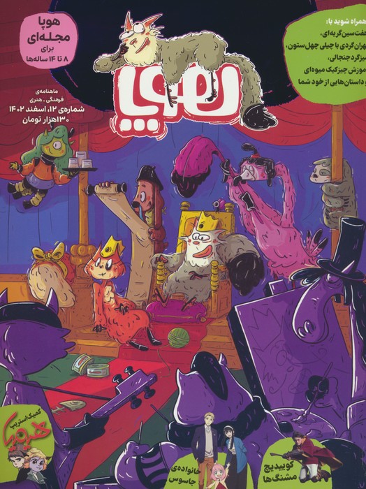 شمارهی دوازدهم، جشن دوسالگی مجلهی هوپاست! تبریک! قوطی کنسرویان، دمدبیر شیطونبلای مجله، ما را با هفتسین گربهای آشنا میکند، و یک کارت تبریک جذاب همراه مجله برایمان میفرستد. با راز زندگی جاودان پرندهای به نام «ققنوس» آشنا میشویم. از کتاب «تهجدولیهای 10» رونمایی میکنیم. قسمت هفتم «کمیکاستریپ هیمیا» را میخوانیم که به جاهای جذابی رسیده! یاد میگیریم «چیزکیک میوهای» درست کنیم. با زندگی «لوییس بریل» مخترع خط بریل آشنا میشویم. دربارهی ورزش «کوآدبال» میخوانیم که از دل کتابهای هریپاتر بیرون آمده، به زندگی «خانوادهی جاسوس» سرک میکشیم، از ماجرای باستانی «تختجمشید» باخبر میشویم و کلی داستان خندهدار و شعر و مطالب آموزنده میخوانیم. با معرفی شخصیت جدید: چیلیچهلستون (پسرعموی جیگیجهانگرد) که دراین شماره رفته تهرانگردی و ما را با دیدنیهای شهر تهران آشنا کرده.