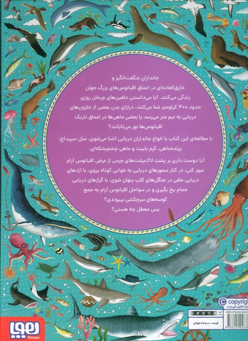 جانداران شگفتانگیز و خارقالعادهای در اعماق اقیانوسهای بزرگ جهان زندگی میکنند. آیا میدانستی دلفینهای چرخان روزی حدود ۴۰۰ کیلومتر شنا میکنند، درازای بدن بعضی از حلزونهای دریایی به نیم متر میرسد یا بعضی ماهیها در اعماق تاریک اقیانوسها نور میتابانند؟ با مطالعهی این کتاب با انواع جانداران دریایی آشنا میشوی، مثل سپیداج، پرندهماهی، کرم بابیت و ماهی چشمبشکهای. آیا دوست داری بر پشت لاکپشتهای چرمی از عرض اقیانوس آرام عبور کنی، در کنار سمورهای دریایی به خوابی کوتاه بروی، با اژدهای دریایی علفی در جنگلهای کلپ پنهان شوی، با گرازهای دریایی حمام یخ بگیری و در سواحل اقیانوس آرام به جمع کوسههای سرچکشی بپیوندی؟ پس معطل چه هستی؟