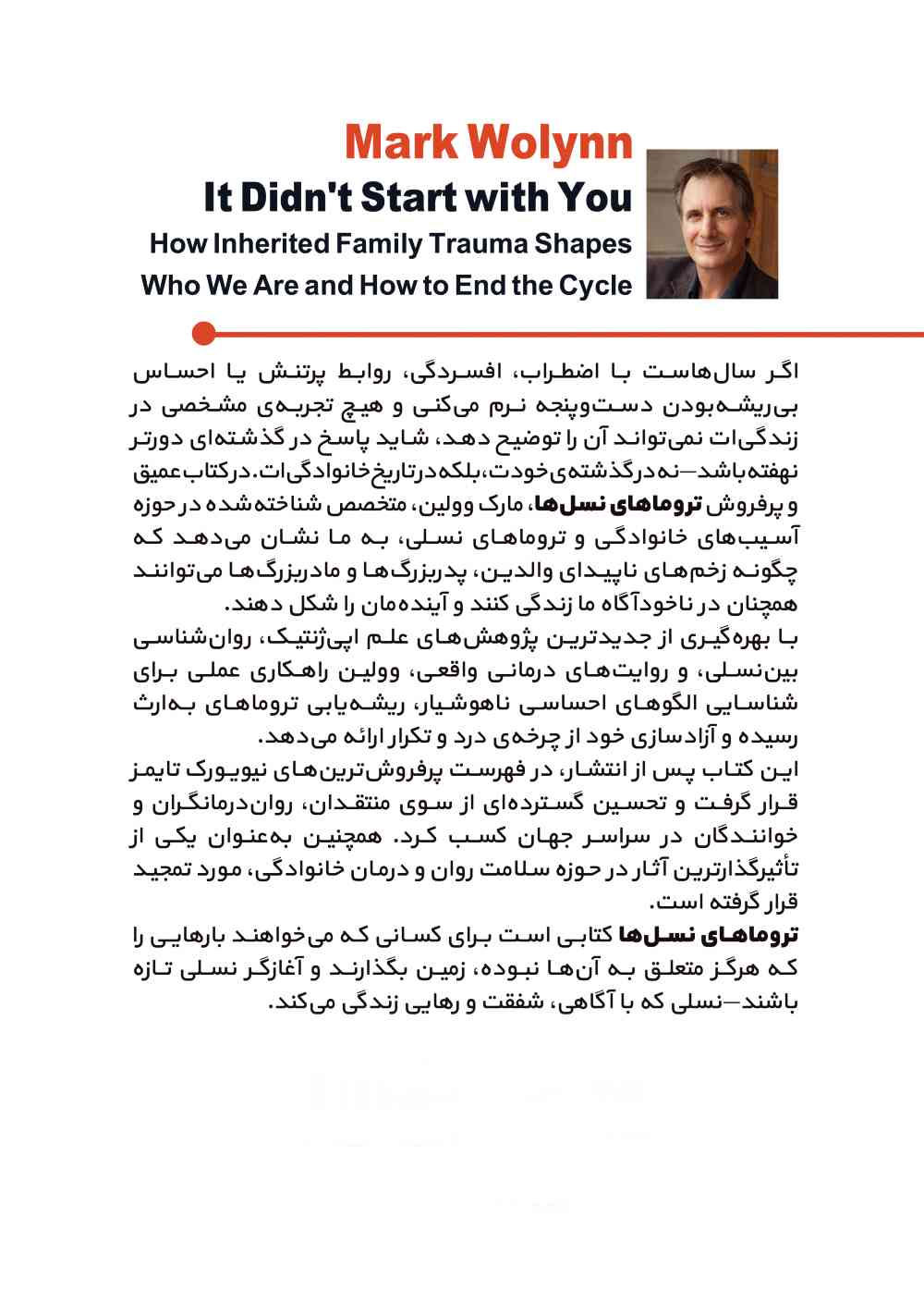 کتاب خیلی خوبیه ، درمورد موروثی بودن تروماها با برسی علمی توضیح داده و کمک میکنه بشناسیمش و درکش کنیم ، و راهکارم میده . منکه خیلی برام مفید بود و چون تعداد صفحه هاتشم خیلی آنچنان زیاد نیست میشه راحت خوندش
