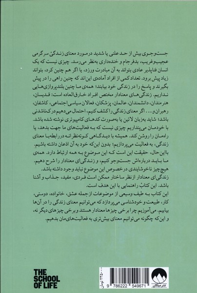 جست وجوی بیش از حد علنی یا شدید درمورد معنای زندگی سرگرمی عجیب وغریب، بدفرجام و خنده داری به نظر می رسد. چیزی نیست که یک انسان فناپذیر عادی بتواند به آن مبادرت ورزد، یا اگر هم چنین کرد، بتواند زیاد پیش برود. تعداد کمی از افراد آماده ی این اند که چنین راهی را در پیش بگیرند و پاسخ را در زندگی خود بیابند؛ همه ی ما چنین بلندپروازی هایی نداریم. زندگی های معنادار مختص افراد خارق العاده است: قدیسان، هنرمندان، دانشمندان، عالمان، پزشکان، فعالان سیاسی اجتماعی، کاشفان، رهبران و… . اگر معنای زندگی را کشف کنیم، احتمال می دهیم درک ناشدنی باشد؛ شاید به زبان لاتین یا به صورت کدهای کامپیوتری نوشته شده باشد. با خودمان می پنداریم چیزی نیست که به فعالیت های ما جهت بدهد، یا راهمان را روشن کند. همیشه با دیدگاهی کوته نظرانه در رابطه با معنای زندگی، به فعالیت می پردازیم؛ بدون این که خود به آن اذعان داشته باشیم. بااین حال، حقیقت این است که این موضوع به همه ارتباط دارد. همه ی ما باید درخصوص آن جست وجو کنیم، و زندگی ای معنادار را شرح دهیم. هیچ چیز ناخوشایندی درخصوص این موضوع نباید وجود داشته باشد. زندگی ای معنادار ازنظر ساختار ممکن است فردی، مفید، جذاب و آشنا باشد. این کتابْ راهنمایی با این هدف است.