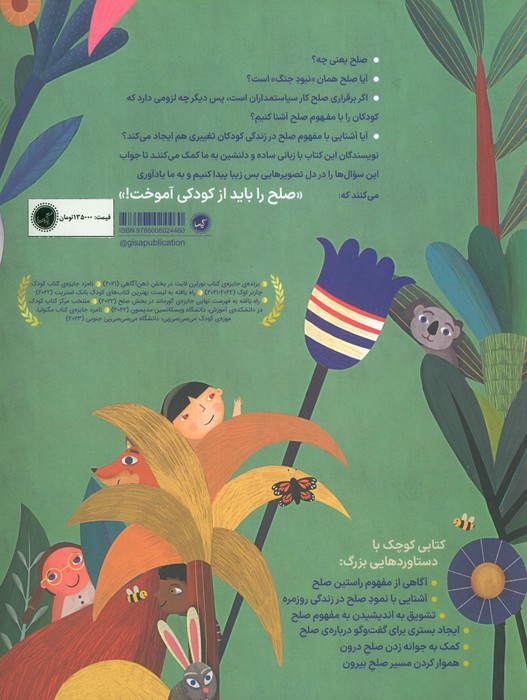 تصور نمیکنم بشه بهتر, سادهتر و جذابتر از این درباره مفهوم "صلح" صحبت کرد. من اول کتاب رو برای دخترم خریدم. اما انقدر از کتاب خوشم اومد که بعد یک جلد هم برای معلم کلاس دخترم هدیه گرفتم تا اون هم با شاگردهاش از صلح صحبت کنه.