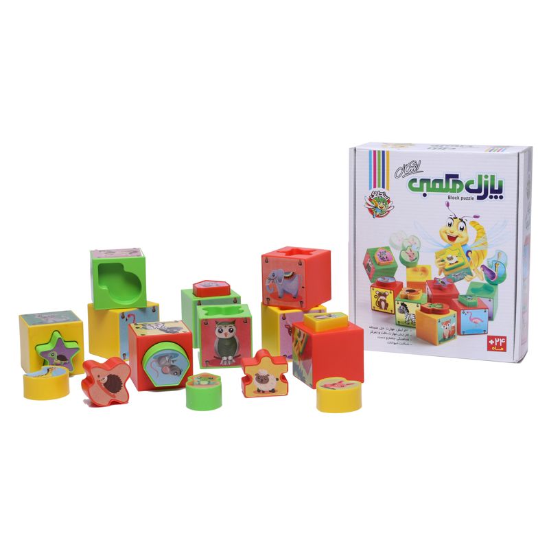 پازل مکعبی اشکال یک محصول چند منظورهی آموزشی است که با هدف آموزش تناظر، رابطه بین قطعات، شناخت رابطه جزء و کل و شناخت حیوانات برای گروه سنی ۱ تا ۳ سال طراحی شده است. در یک وجه هر مکعب تصاویری وجود دارد که با قرار دادن ۹ مکعب در کنار یکدیگر، یک تصویر سه در سه ساخته میشود. برای ساختن برجی از حیوانات، کودک میتواند با توجه به حفرههای هر وجه مکعب، شکل متناسب با آن را پیدا کرده و مکعبها را روی یکدیگر قرار دهد. همچنین میتوان مکعبها را در یک ردیف کنار یکدیگر قرار داد و از کودک خواست تا شکل مناسب هر مکعب را درون حفرههای خود جای دهد.