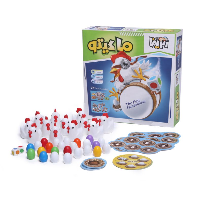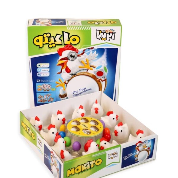 ۱۲ تا مرغ خوشگل و بامزه به همراه ۱۲ تخممرغ رنگی، ۱۲ تخممرغ سفید و ۲ تاس رنگ با هم جمع شدهاند تا در یک بازی ۲ تا ۴ نفره، ساعتها شما را سرگرم کنند و باعث شوند حافظه و هوش هیجانی شما تقویت شوند. ماکیتو را میتوان به دو روش با تخم مرغهای سفید یا رنگی انجام داد. در روش بازی با تخم مرغهای رنگی عامل شانس هم به بازی اضافه میشود تا هم بیشتر به زندگی واقعی شبیه شود و هم به جذابیت بازی افزوده گردد. در روش اول باید خیلی خوب به خاطر بسپرید که تخمها زیر کدام مرغها هستند و کدام مرغها زیرشان تخم ندارند. هر بار که اشتباه کنید تخم مرغ شما روی کارت امتیاز کمی ترک میخورد. در روش دوم باید تخم مرغهای رنگی را پیدا کنید.