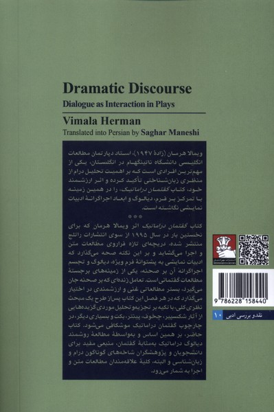 «گفتمان دراماتیک» کتابی نوشته ویمالا هرمن، نویسنده آمریکایی است. این اثر در دسته ادبیات آموزشی قرار می گیرد و موضوع آن درباره هنر تئاتر است. «گفتمان دراماتیک» کتابی است که بر دیالوگ نویسی در تئاتر تمرکز دارد و به نمایشنامه نویسان و علاقمندان به تئاتر راهکارهایی را برای نوشتن گفت و گوهای سازنده در نمایشنامه آموزش می دهد. این کتاب که نخستین بار در سال 1995 چاپ شد، اثری آموزشی است که برای دانشجویان کارشناسی و کارشناسی ارشد که در زمینه های زبان شناسی و سبک شناسی ادبی تحصیل می کنند، مناسب است. با این حال «گفتمان دراماتیک» می تواند برای علاقمندان به مطالعه در زمینه تئاتر و رابطه بین متن نمایشی و اجرا نیز راهگشا باشد. هر فصل کتاب «گفتمان دراماتیک» شامل یک بخش نظری است که در آن مفاهیم اصلی ارائه می شود. نویسنده در ادامه به تحلیل و بررسی مفاهیم مورد نظر پرداخته و سپس ارتباط میان موضوعات با گفتمان نمایشی را شرح می دهد. در «گفتمان دراماتیک» روش هایی ارائه شده که براساس آن ها نمایشنامه نویسان و کارگردانان تئاتر می آموزند چگونه ایده هایی را که از زندگی دریافت کرده اند به گفتمانی نمایشی تبدیل کنند. همچنین در این کتاب نکاتی درباره ارتباط میان زبان و ذهنیت وجود دارد که در نوشتن دیالوگ های تعاملی برای اجرا روی صحنه کاربرد دارد. این کتاب که مطالعه ای درباره گفتمان تعاملی در تئاتر است براساس نظریه های علمی-تئاتری شکل گرفته است. نویسنده در «گفتمان دراماتیک» مدل های زبانی پنهان در گفت و گو را شرح داده و استدلال می کند که درام به دلیل ویژگی های فرمی، دیالوگ و ترجمه به زبان های دیگر و در نهایت به اجرا درآمدن، باید مورد توجه ویژه زبان شناسان قرار گیرد. نویسنده بر این باور است که تعاملی که روی صحنه تئاتر رخ می دهد، منبعی مهم برای تحلیل زبانشناسی است و محققان می توانند اجراهای تئاتر را به دلیل گفتمان های تعاملی که در آن شکل گرفته مورد مطالعه قرار دهند.