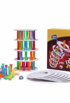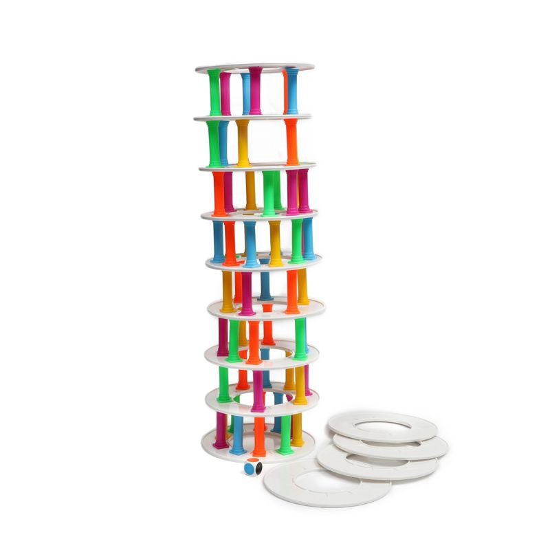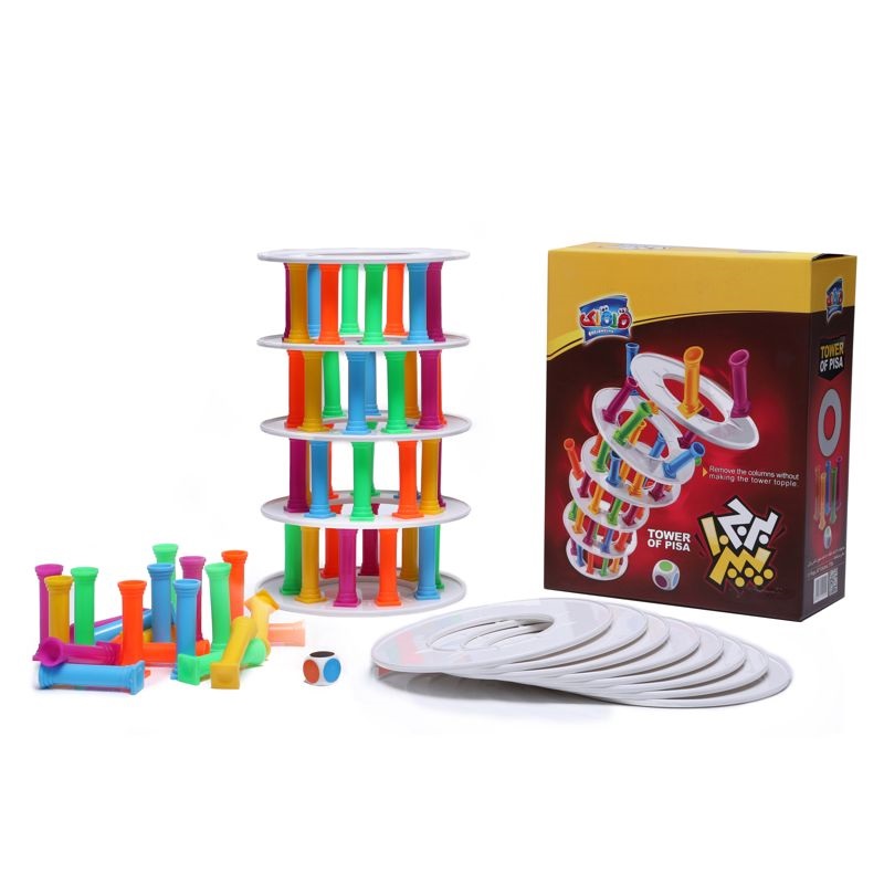 در یک بازی نفسگیر و پر از هیجان، هر یک از بازیکنان باید ستونی را به رنگی که تاس نشان میدهد از قسمتهای زیرین برج بردارد و روی برج بگذارد. کسی که حین انجام این کار باعث فرو ریختن برج شود از بازی بیرون میرود و آخرین نفر باقیمانده پیروز میدان حفظ تعادل خواهد بود. برج پیزا از آن بازیهایی است که با هر تعداد، از دو نفر به بالا و حتی یک نفره، میتوان آن را انجام داد و ساعتها لذت برد و سرگرم شد. دفترچهی راهنمای این بازی به دو زبان فارسی و انگلیسی تهیه شده است.