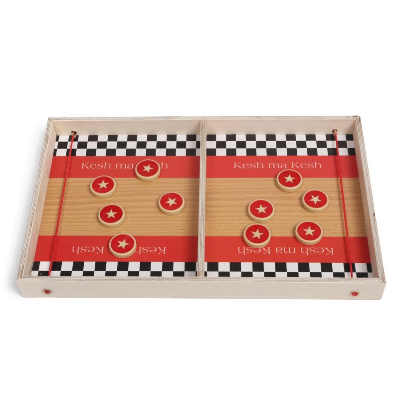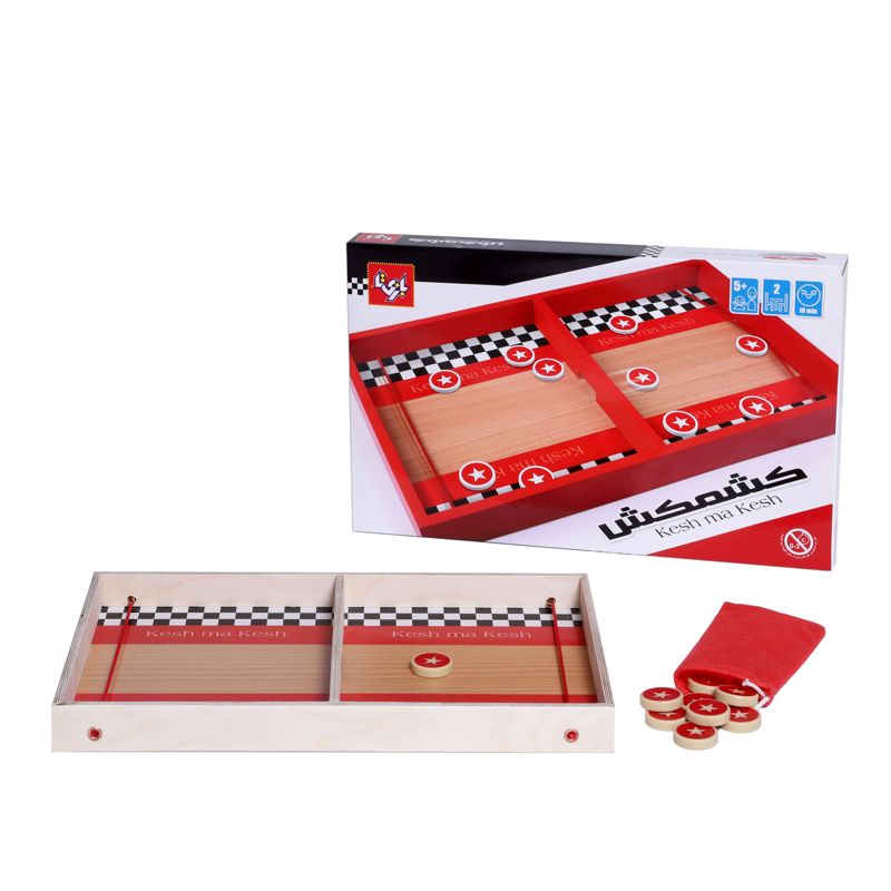 کشمکش یک بازی دو نفرهی فوق سریع، پر هیجان و واقعا پر از کشمکش است. صفحهی چوبی بازی به دو قسمت تقسیم شده است و در هر دو طرف آن کشی وجود دارد که بازیکنها باید با کمک آن سه مهرهی خود را از حفرهی وسط به زمین حریف برسانند. توجه داشته باشید که برای این کار فقط باید از یک دست و یک انگشت استفاده کنید. این بازی در اندازهی کوچکتر هم تولید شده است که در آن هر بازیکن به جای پنج مهره، سه مهره در زمین خود دارد.