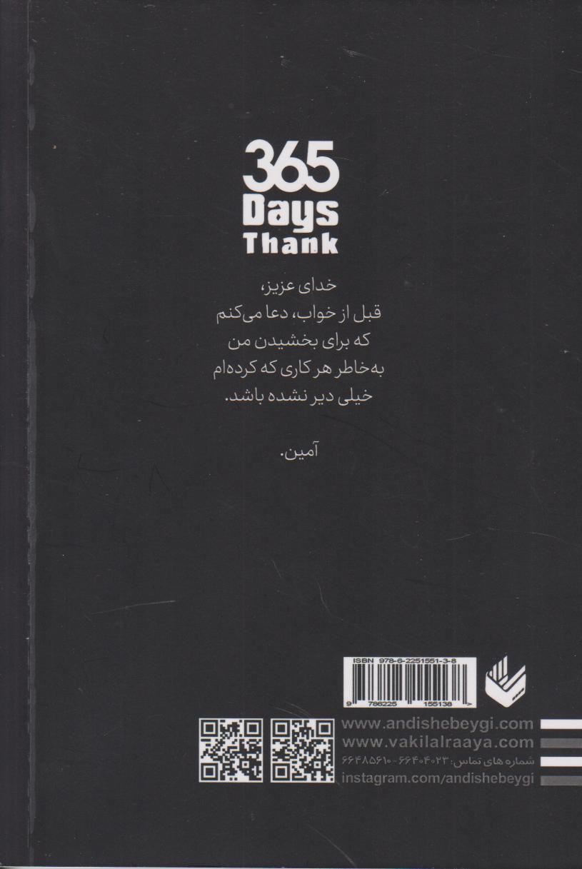 کتاب «365 روز شکرگزاری» نوشته شاعر کانادایی آکیرا می باشد او در این کتاب مسیری یکساله را برای بازسازی ارتباط معنوی و تسکین آسیبهای روحی بیان میکند. ساختار کتاب بر پایهی ارتباط روزانه بنا شده هر روز از سال به یک جملهی قصار، یک دعای کوتاه یا یک فرمان درونی اختصاص دارد که هدفش ایجاد یک توقف آگاهانه در شلوغیهای زندگی است. آکیرا خواننده را مخاطب معنوی خود قرار میدهد و او را به جدی گرفتن مسائل اساسی زندگیاش فرا میخواند و می نویسد درمورد آرامشت، آیندهت، اهدافت، سلامت روانت، زندگی و روحیهت جدی باش. این کتاب مجموعهای از دستورالعملهای ساده و اساسی برای تغییر نگرش است. تأملاتی مانند نگران نباش، به زمانبندی خدا اعتماد کن. روزنه ای برای مقابله با اضطراب و پرورش امیدواری فراهم میآورند. مسئلهی اصلی کتاب، تمرین روزانهی شکرگزاری به عنوان یک راهکار موثر برای شفای درونی است. آکیرا معنویت را به عنوان پناهگاهی برای ذهنهای خسته و پژمرده معرفی میکند و توضیح میدهد چگونه پذیرش و قدردانی از آنچه خداوند در مسیر زندگی قرار داده، سبب میشود به تدریج بار سنگین غم کمتر گردد. آکیرا از خواننده کتابش میخواهد هر روز زمانی را به تفکر دربارهی عبارت کتاب و ارتباط آن با زندگی شخصی خود اختصاص دهد. تا به مهارت کاربردی برای مدیریت اختلالهای روحی و روانی برسد. «365 روز شکرگزاری» دفتر تمرین روزانه برای روح است. این اثر گفتگوی مستمر با خویشتن و با منبعی بالاتر، که در آن هر روز فرصتی برای یافتن معنا، آرامش و در نهایت، بازسازی شادمانهی زندگی است را فراهم می سازد. این کتاب برای کسانی که به دنبال راهی برای برگشت به مسیر متعالی هستند تا زخمها و کینههای کهنه خود را کنار بگذارند اثری خواندنی است.
