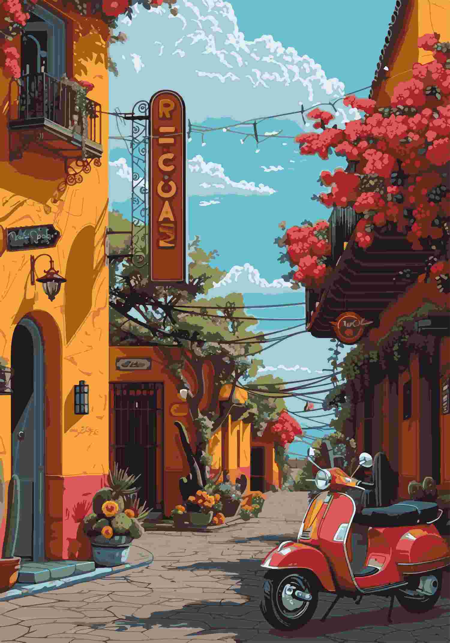 معرفی کتاب کیت رنگ آمیزی (فان آرت) کوچه روستایی کد 251 (50*35)
