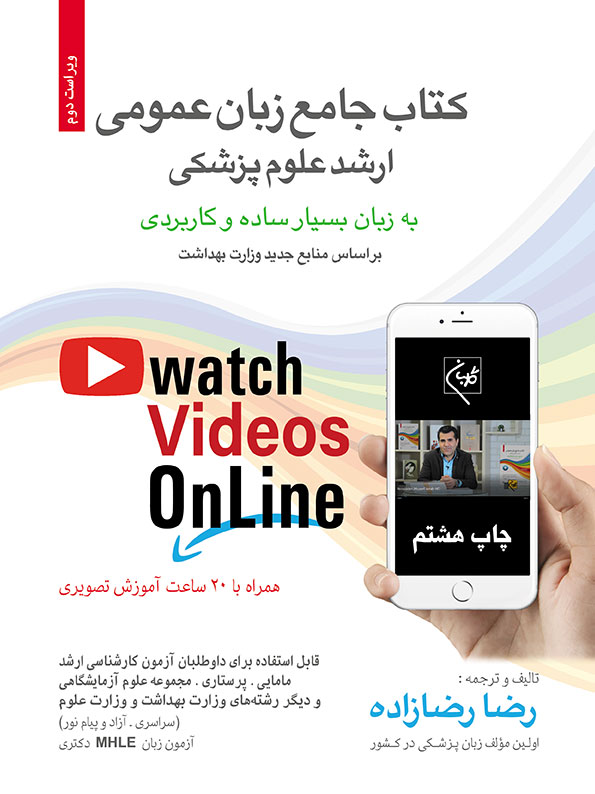 این کتاب شامل 6 بخش جداگانه میباشد و کتاب بصورتی طراحی شده است تا قانون یادگیری صفر تا صد زبان ارشد پزشکی در آن بخوبی رعایت شود. به عبارت دیگر با مطالعه مفید و منظم این کتاب از مرحله یادگیری لغات و اصطلاحات آسان به مرحله یادگیری پیچیده زبانی میرسید.در بخش نخست کتاب و قبل از شروع به یادگیری زبان، اصول 9 گانه طلایی قرارداده شده است. توصیه میشود ابتدا این اصول را به دقت مطالعه کنید زیرا با خواندن این اصول، نه تنها آموختههای قبلی شما از دانش زبان به چالش کشیده میشوند، بلکه یاد خواهید گرفت که چگونه میتوان واژگان زبان انگلیسی را طوری یاد بگیرید که هرگز فراموش نشوند.سپس به بخش دروس هشت گانه میرسید. در این بخش متون مهم کتابهای Developing and Expanding Reading Skills استفاده شدهاند. علت انتخاب این متون این است که در آزمونهای زبان کارشناسی ارشد و دکتری وزارت بهداشت و علوم هر سال، از لغات و اصطلاحات این دو کتاب استفاده شایانی میشود. در بخش دروس هشت گانه، هفت درس دارای آنالیز تشریحی کامل از لغات و اصطلاحات ضروری هستند که بلافاصله بعد از هر درس به آنها پرداخته شده است. البته بسیار تلاش گردیده تا بیشتر بر روی موارد کلیدی و نکات ضروری تمرکز شود و تقریبا از لغات و اصطلاحات غیر ضروری در این کتاب استفاده نشده است. درس هشتم از دروس هشت گانه، یک متن انتخابی از رفرانسهای زبان ارشد است که در پایان این درس نیز یک فهرست از لغات مهم متن قرار دارد تا داوطلب بتواند با رجوع به آن به راحتی بتواند متن درس را ترجمه و میزان دانش زبان خود را ارزیابی نماید. توصیه میشود تا روش مطالعه این بخش بصورت مطالعه هر درس در طول یک هفته باشد به شکلی که دو روز مطالعه پیاپی و روز سوم فقط مرور دو روز قبل و مجددا روز چهارم و پنجم مطالعه پیاپی و روز ششم مطالعه دو روز قبل و روز جمعه مطالعه و مرور تمام مطالب طول هفته باشد.این کتاب دارای یک مجموعه تصویری آموزشی و کامل از تدریس استاد رضازاده نیز هست که با بهترین کیفیت توسط مرکز آموزش گلبان تهیه و به بازار عرضه شده است.ضرورت در کسب نمره بالای 25 برای حد نصاب در قبولی درس زبان و نیز تقاضای بسیار زیاد دانشجویان از شهرستانهای سراسر کشور برای ارسال آموزشهای تصویری از کلاسهای کنکوری، ما را بر آن داشت تا اقدام به تولید محتوای تصویری از قسمتهای کاملا کنکوری این کتاب نماییم تا شما بتوانید این کلاسها را به منزل ببرید. در این مجموعه تصویری، تمامی لغات و اصطلاحات دروس هشت گانه به همراه مترادفها، متضادها و مشتقات آنها تدریس شده است.کتاب حاضر بههمراه این مجموعه تصویری، برای غلبه بر ترس و استرس از یادگیری زبان، شما را بینیاز خواهند کرد. تاکید می شود مطالعه مفید و چندین باره و مرور این کتاب در کنار مشاهده ویدئوها به داوطلب امکان میهد تا درصد بالای 50% را در آزمون ارشد علوم پزشکی به راحتی کسب نماید.پس از بخش دروس هشت گانه، به بخش اشکالات ویژه (اشتباهات رایج ) میرسید. در این بخش یکصد مورد مهم کنکوری از اشکالات رایج انگلیسی در آزمونهای زبان ارشد و دکتری قرار داده شده اند. توصیه میشود تا در کنار متون دروس هشت گانه روزانه 3 تا 4 (مجموعا 10 تا 12 مورد در یک هفته) از این اشکالات حتما مطالعه شوند.درقسمت بعدی، بخش واژگان ضروری تافل قرار دارد. برای یادگیری بهتر واژگان میتوانید تا در کنار متون دروس هشت گانه، روزانه 3 تا 4 صفحه از این بخش را نیز مطالعه کنید تا مطالب هرگز فراموش نشوند. به یاد داشته باشید که اساسی ترین رکن یادگیری درس زبان تکرار و مرور میباشد.پس از بخش لغات ضروری به بخش مجموعه سوالات 10 سال اخیر زبان کنکور ارشد بهداشت میرسید که این مرحله را میتوان یک سنجش کامل از دانش زبان شما در نظر گرفت. اکیدا توصیه می شود که این مرحله را پس از اتمام مطالعه مفید و منظم بخشهای قبلی کتاب انجام دهید و در شروع مطالعه کتاب، از تست زنی و آزمون پرهیز نمایید مگر اینکه زمینه خوبی از زبان ارشد پزشکی داشته باشید. اگر با دامنه اندک دانش زبان، تستهای کنکوری بزن