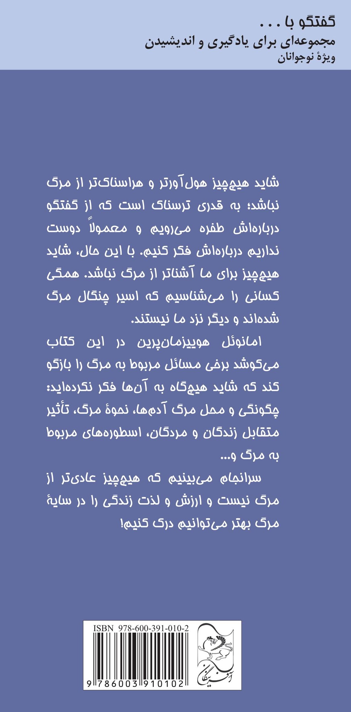عجیب به نظر میرسد اگر آدم با دختر یازدهسالهاش درباره مرگ صحبت کند، اما در کودکی مرگ سادهتر بیان میشود، چراکه وقتی بزرگتر میشویم دیگر جرئت نمیکنیم راجع به آن حرفی بزنیم. این کتاب نمیخواهد درباره مرگ کسی صحبت کند، فقط میخواهد بچهها مرگ را عامل از دست دادن وحشتناک عزیزان و عذابی دردناک نبینند، بلکه آن را پدیدهای طبیعی و پذیرفتنی بدانند. گفتگو با بچهها درباره مرگ باعث میشود که آنها با علاقه بیشتری به زندگیشان ادامه دهند و از صحبت کردن درباره این موضوع نگران نباشند. امانوئل هوییزمان پرین، نویسنده کتاب، معلم فلسفه در دبیرستانهای فرانسه است. وی در این کتاب به مسائلی درباره مرگ پرداخته است که تابهحال شاید به آن فکر نکرده باشید. به همین دلیل گاهی موجب حیرت و تعجبتان میشود. این کتاب ادامه کتابهای گفتگو با پسرم درباره بربرها، گفتگو با نوهام درباره پیش از تاریخ، گفتگو با نوهام درباره جنگ جهانی اول و گفتگو با بچهها درباره قرون وسطی است.