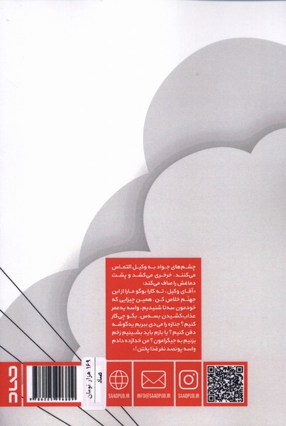چشمهای جواد به وکیل التماس میکنند. خرخری میکشد و پشت دماغش را صاف میکند: «آقای وکیل، ته کارا بوگو ما را از این جهنّم خلاص کن. همین چیزایی که خودمون سهتا شنیدیم، واسه یهعمر عذابکشیدن بسهس. بوگو چیکار کنیم؟ جنازه را میدی ببریم یهگوشه دفن کنیم یا بازم باید بیشینیم زخم بزنیم به جیگرامون؟ من خدازده دادم واسه پونصد نفر غذا پختن!»