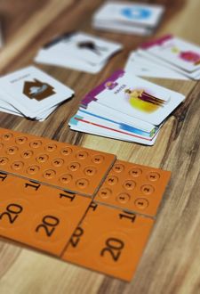 حاوی: 5 کارت میدان روستا، 2 کارت راهنما، 5 بنیان گذار، 20 کارت روستائیان اولیه، 100 روستائیان دیگر،کارت بازار، 90 توکن سکه