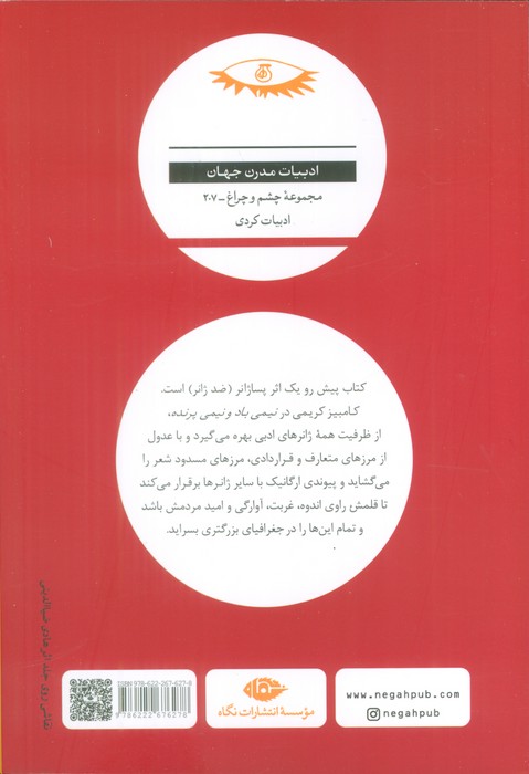 کتاب پیش رو یک اثر پساژانر ضد ژانر است . کامبیز کریمی در نیمی باد و نیمی پرنده ، از ظرفیت تمام ژانرهای ادبی بهره میگیرد و با عدول از مرزهای متعارف و قراردادی ، مرزهای مسدود شعر را میگشاید و پیوندی ارگانیک با سایر ژانرها برقرار میکند تا قلمش راوی اندوه ، غربت ، آوارگی و امید مردمش باشد و تمام این ها را در جغرافیای بزرگتری بسراید.