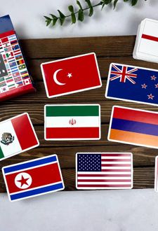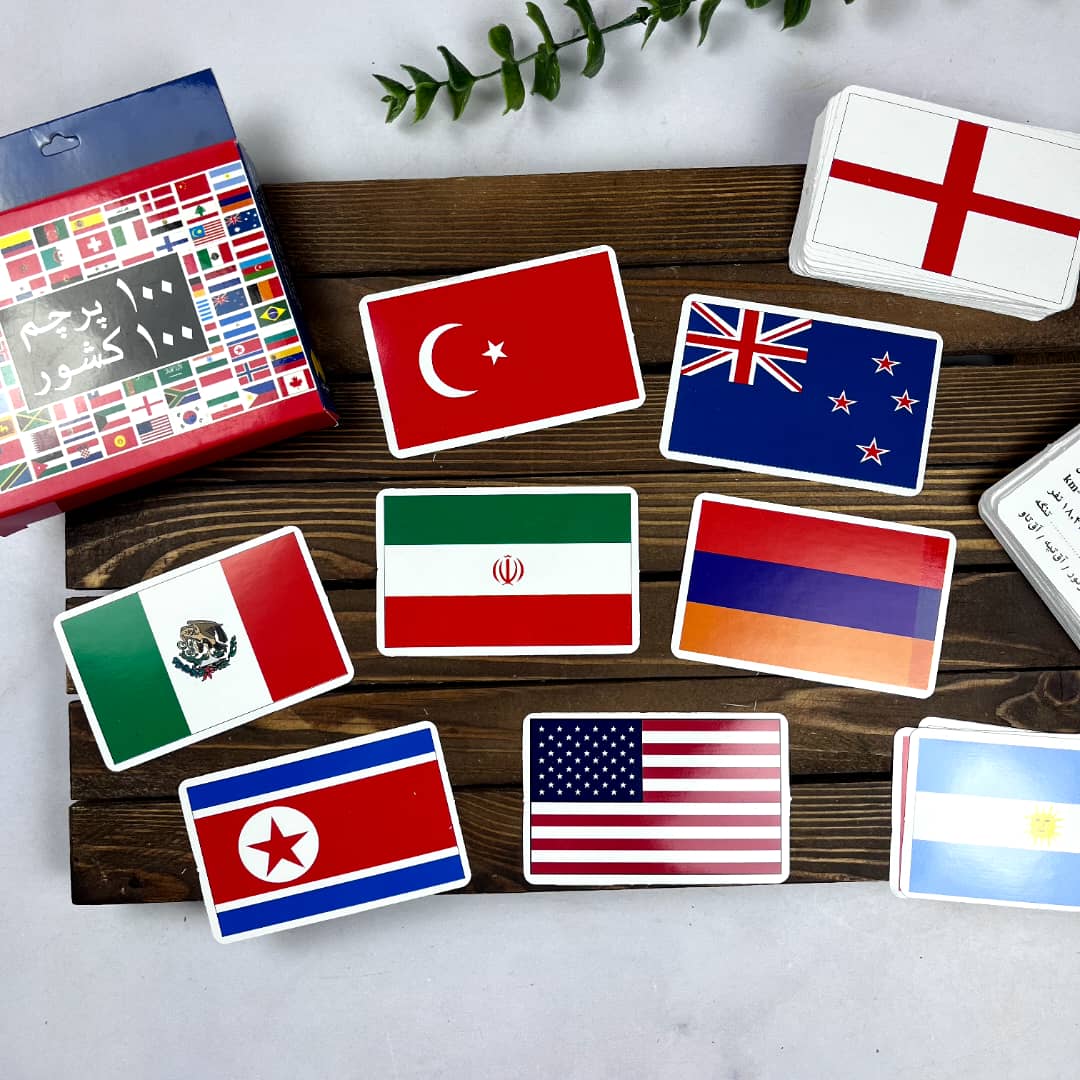 این فلش کارت شامل 100 عدد فلش کارت که بر یک روی آن عکس پرچم 100 کشور و و بر روی دیگر آن اطلاعاتی مثل نام کشور، نقشه، نوع حکومت، زبان رسمی ، پایتخت، مساحت و … نوشته شده.