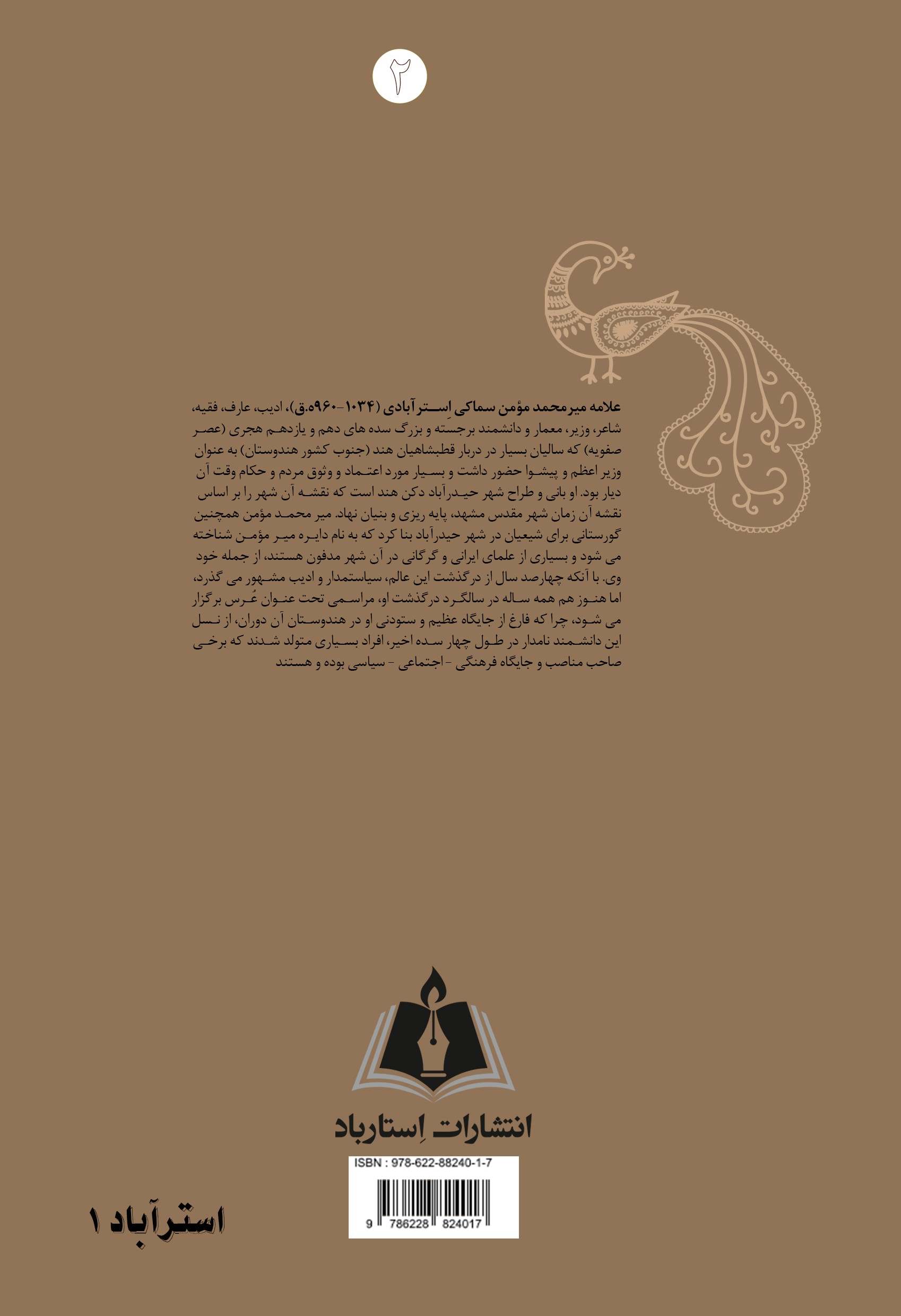 کتاب به زندگی، آثار، احوال و معرفی کامل علامه میرمحمد مومن استرآبادی (متوفی 1036) پیشوای شیعیان جنوب هندوستان، شاعر، فقیه، عالم، معمار، نویسنده و رهبر و مرجع دینی دربار قطبشاهیان هند در اوایل سده یازدهم هجری میپردازد. شخصیتی که هنوز هم با گذشت بیش از چهارصدسال از درگذشت او، همه ساله برایش مراسم یادبود (عرس) برگزار میشود. گورستان مشهور دایره میرمومن در حیدرآباد دکن هندوستان، ساخته و پرداخته اوست.