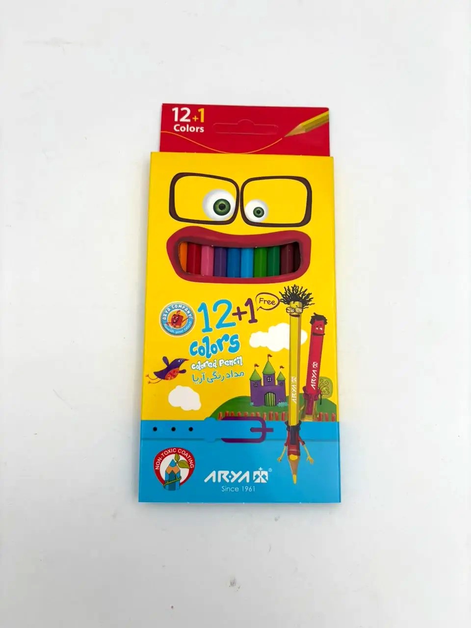 دسته بندی های مدادرنگی 12+1 رنگ جعبه مقوایی (آریا)