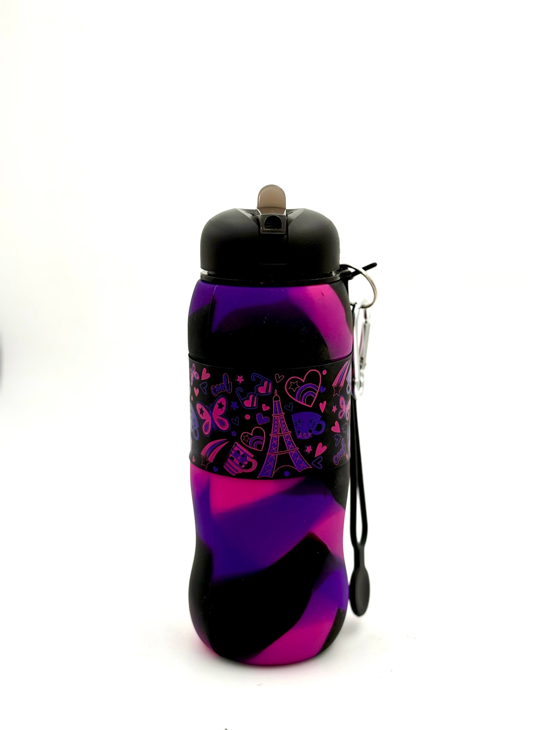 قمقمه سیلیکونی آکاردئونی آبی بنفش اسکول فنز