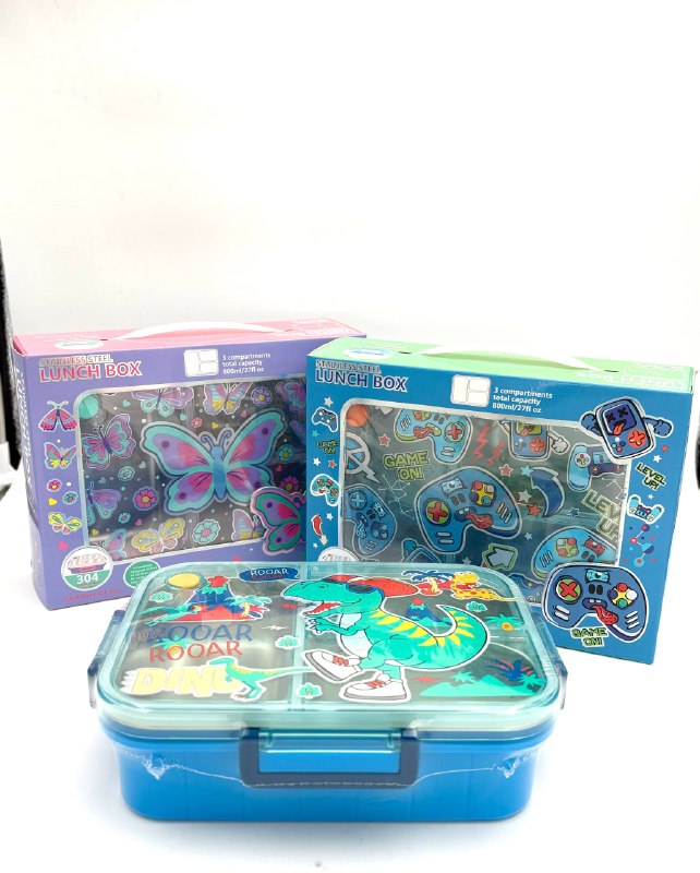 ظرفغذا تک طبقه 800 میل مستطیل سهخانه فانتزی (استیل304) وست - (دایناسور فضایی)