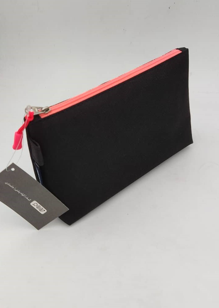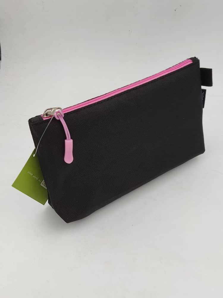 جامدادی تک زیپ پاکتی مشکی بزرگ زوم (مشکی صورتی)