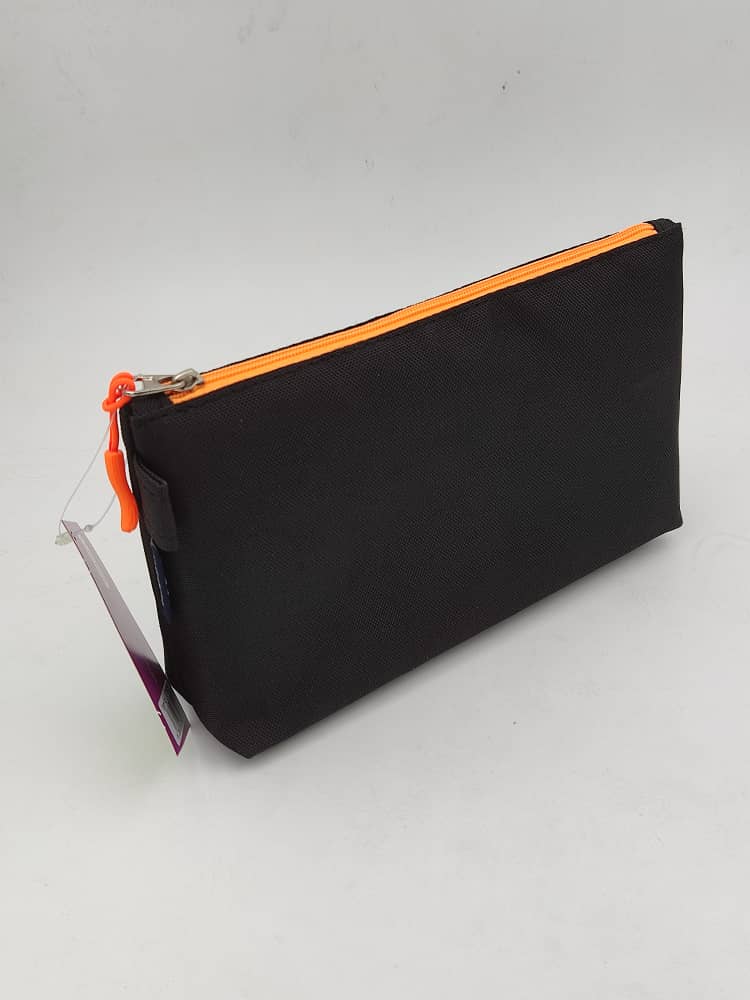 جامدادی تک زیپ پاکتی مشکی بزرگ زوم (مشکی نارنجی)