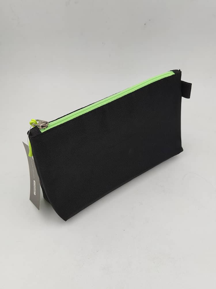 جامدادی تک زیپ پاکتی مشکی بزرگ زوم (مشکی سبز)