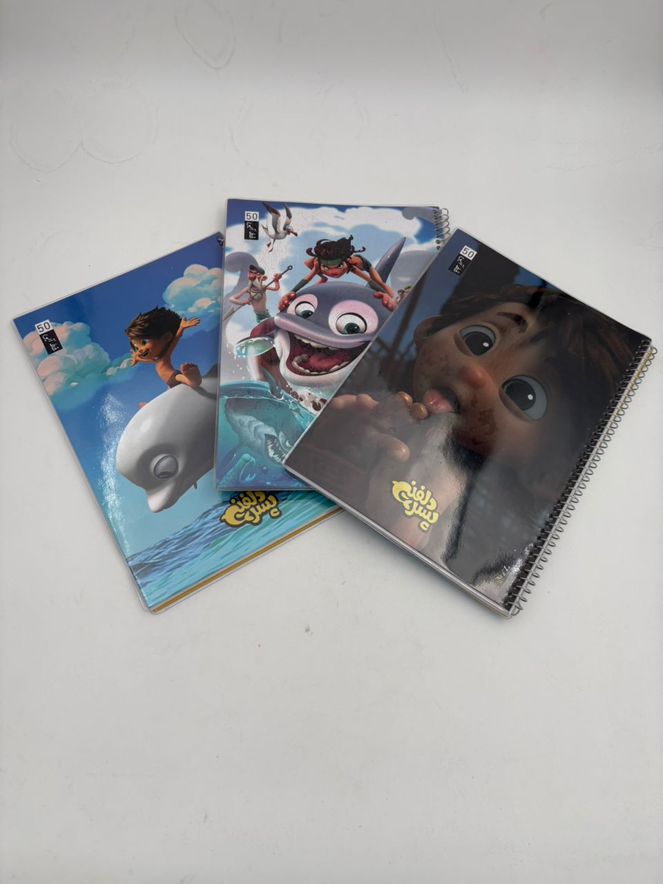 دفتر 50 برگ وزیری سیمی مجلد (خط آبی )برگ سری پسردلفینی