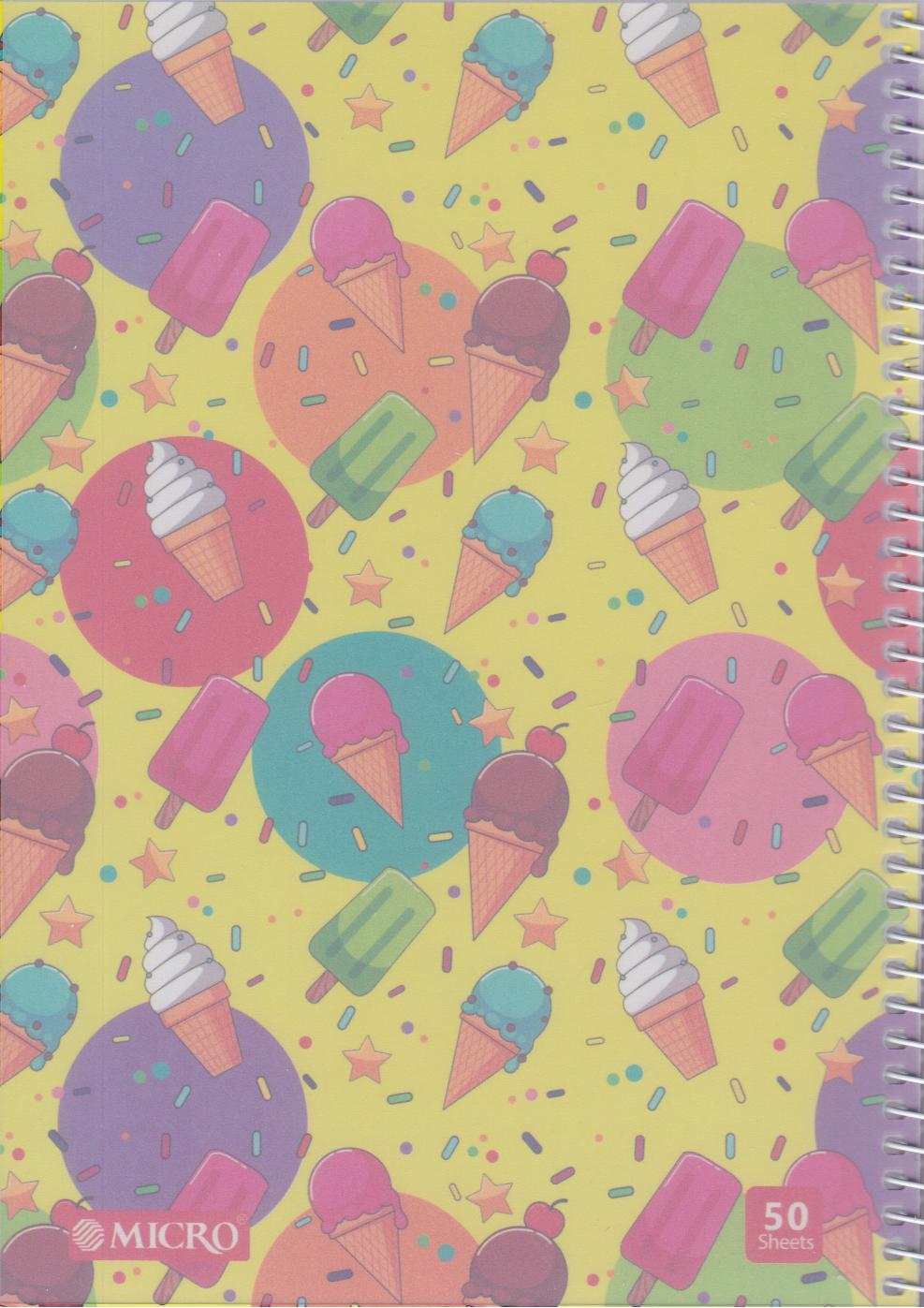 دفتر 50 برگ وزیری سیمی طلقی گلاسه فانتزی میکرو (بستنی)