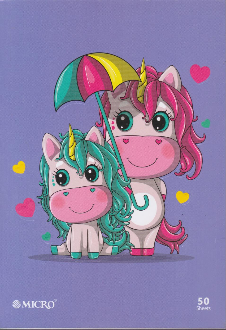 دفتر 50 برگ وزیری ته چسب میکرو طرح کارتونی (تک شاخ)