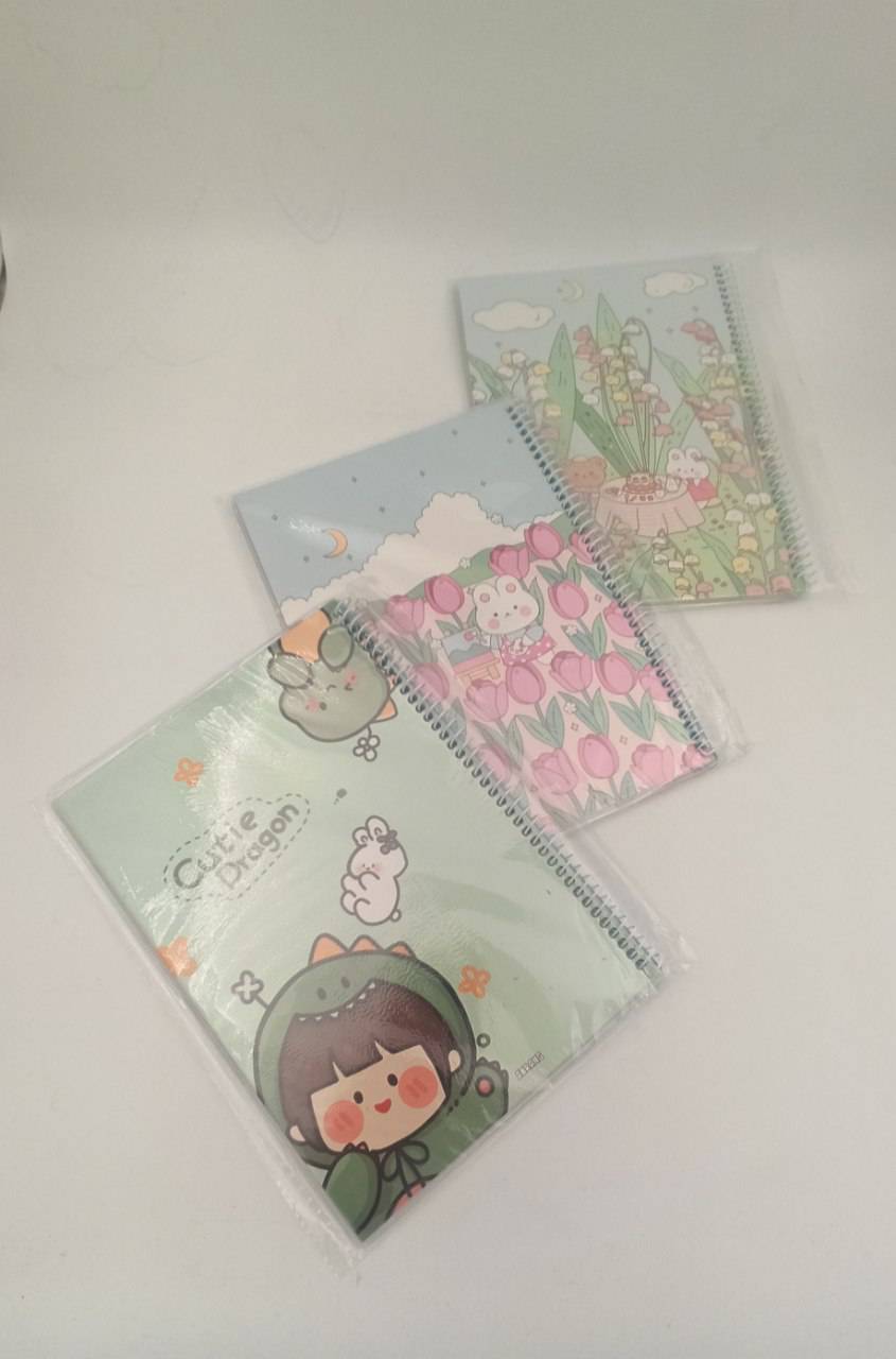 دفتر 40 برگ وزیری سیمی مجلد حاشیهدار آبرنگ (دختر دایناسور)