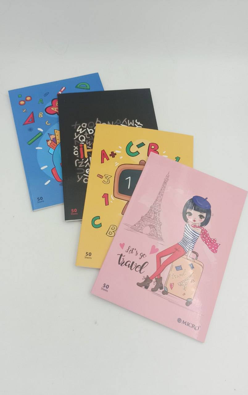 دفتر 50 برگ دوخط وزیری ته چسب میکرو (دختر صورتی)