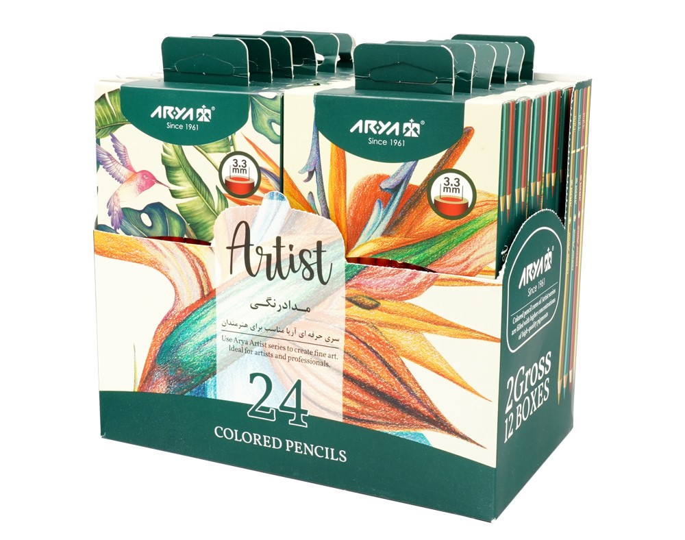 دسته بندی های مدادرنگی 24 رنگ جعبه مقوایی حرفهای/ آرتیست آریا