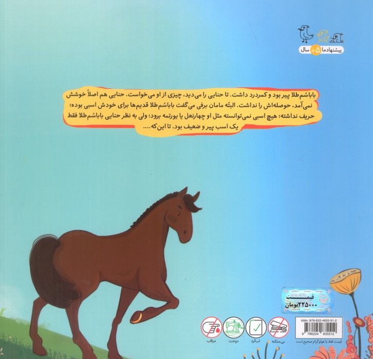 بابا سم طلا پیر بود و کمردرد داشت. تا حنایی را میدید، چیزی از او میخواست. حنایی هم اصلا خوشش نمی آمد. حوصلهاش را نداشت. البته مامان برفی میگفت بابا سم طلا قدیمها برای خودش اسبی بوده؛ حریف نداشته؛ هیچ اسبی نمیتوانسته مثل او چهار نعل یا یورتمه برود؛ ولی به نظر حنایی بابا سم طلا فقط یک اسب پیر و ضعیف بود. تا این که......