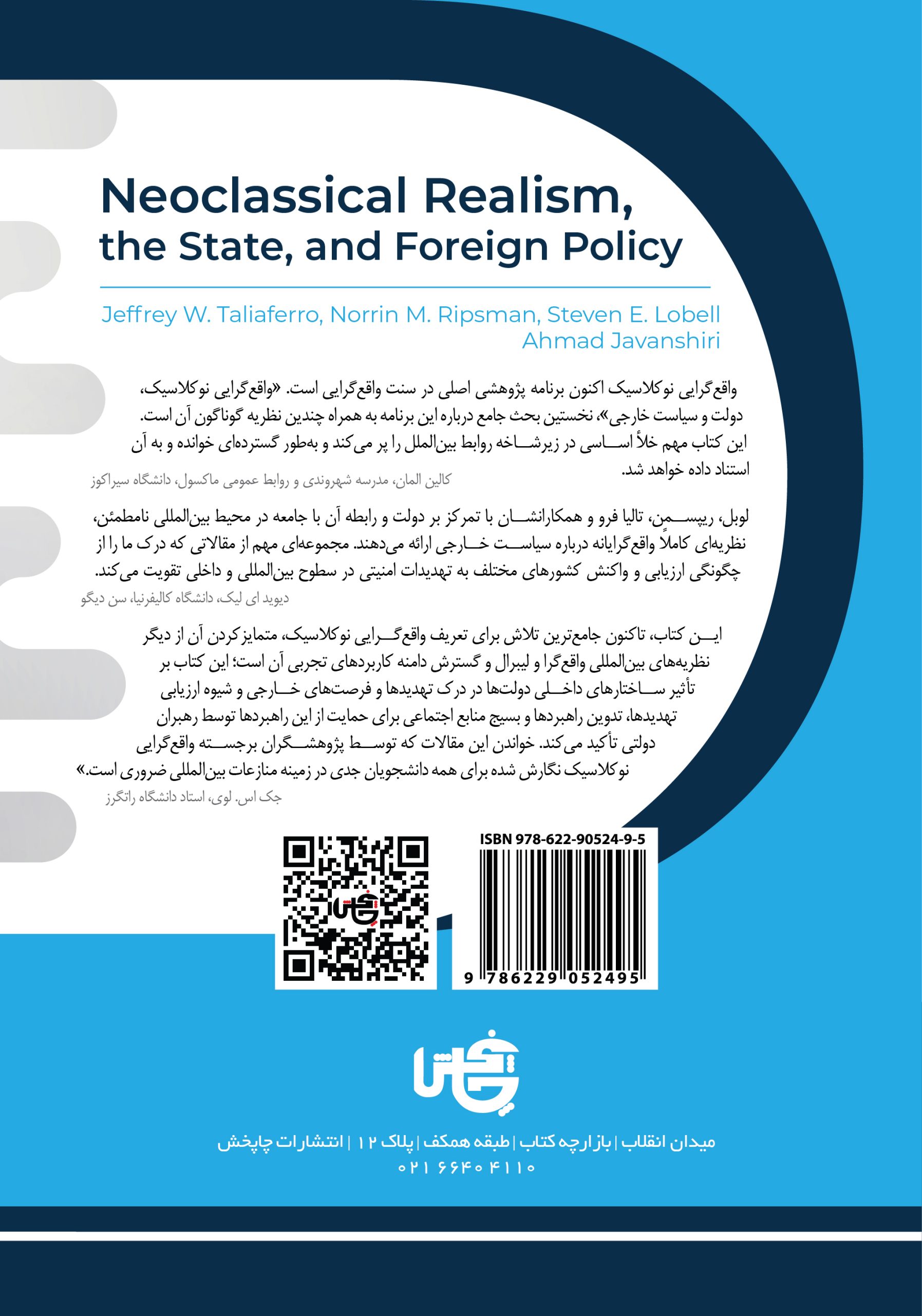 واقعگرایی نوکلاسیک اکنون برنامه پژوهشی اصلی در سنت واقعگرایی است. «واقعگرایی نوکلاسیک، دولت و سیاست خارجی»، نخستین بحث جامع درباره این برنامه به همراه چندین نظریه گوناگون آن است. این کتاب مهم خلأ اساسی در زیرشاخه روابط بینالملل را پر میکند و بهطور گستردهای خوانده و به آن استناد داده خواهد شد. لوبل، ریپسمن، تالیا فرو و همکارانشان با تمرکز بر دولت و رابطه آن با جامعه در محیط بینالمللی نامطمئن، نظریهای کاملا واقعگرایانه درباره سیاست خارجی ارائه میدهند. مجموعهای مهم از مقالاتی که درک ما را از چگونگی ارزیابی و واکنش کشورهای مختلف به تهدیدات امنیتی در سطوح بینالمللی و داخلی تقویت میکند. این کتاب، تاکنون جامعترین تلاش برای تعریف واقعگرایی نوکلاسیک، متمایزکردن آن از دیگر نظریههای بینالمللی واقعگرا و لیبرال و گسترش دامنه کاربردهای تجربی آن است؛ این کتاب بر تأثیر ساختارهای داخلی دولتها در درک تهدیدها و فرصتهای خارجی و شیوه ارزیابی تهدیدها، تدوین راهبردها و بسیج منابع اجتماعی برای حمایت از این راهبردها توسط رهبران دولتی تأکید میکند. خواندن این مقالات که توسط پژوهشگران برجسته واقعگرایی نوکلاسیک نگارش شده برای همه دانشجویان جدی در زمینه منازعات بینالمللی ضروری است.»