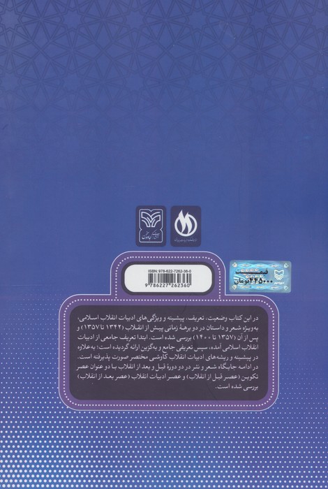 در این کتاب وضعیت تعریف پیشینه و ویژگیهای ادبیات انقلاب اسلامی به ویژه شعر و داستان در دو برهه زمانی پیش از انقلاب (۱۳۴۲ تا ۱۳۵۷) و پس از آن (۱۳۵۷ تا 1400) بررسی شده است. ابتدا تعریف جامعی از ادبیات انقلاب اسلامی آمده، سپس تعریفی جامع و به گزین ارائه گردیده است. به علاوه در پیشینه و ریشههای ادبیات انقلاب کاوشی مختصر صورت پذیرفته است. در ادامه جایگاه شعر و نشر در دو دوره قبل و بعد از انقلاب با دو عنوان عصر تکوین ( عصر قبل از انقلاب) و عصر ادبیات انقلاب (عصر بعد از انقلاب) بررسی شده است.