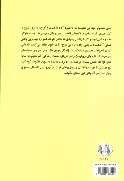 حس معصوم کودکی همیشه در ناخودآگاه ما هست و گرچه به مرور بلوغ و گذر عمر، آرام آرام زیر لایههای نامحسوس روانیمان میخزد اما هرگز معدوم نمیشود و اگر با زنگار پلیدیها مکدر نگردد همواره مهمترین بخش هستی آگاهانه ما یعنی "یادمان ازلی روح" را در خود حفظ می کند، یادمانی که در احوالات بعدی و ناملایمات زندگی چون فانوسی در پس حواسمان میدرخشد تا مأوای رویایمان را در دریای ظلمت زندگی گم نکنیم، در سایههای فژاک جنگل پلیدی مردمان و راه بردن دوباره به سوی ملکوت کودکی، نور بهشتی یا مهر مادرانه آن بهروزیهای فراتر از آرزو. این داستان سفری پربار است در آفرینش این معنای مألوف.