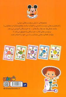 مجموعه‌ی دنیای برچسب‌های دیزنی با شخصیت‌های دوست‌داشتنی و کلمات ساده، مفاهیم اولیه و متفاوتی را مانند شکل‌ها، عددها رنگ‌ها و.... به خردسالان آموزش می‌دهد. برچسب‌های کتاب، خردسالان را تشویق می‌کند تا بتوانند فعالیت‌هایی متناسب با سن خود را انجام دهند.