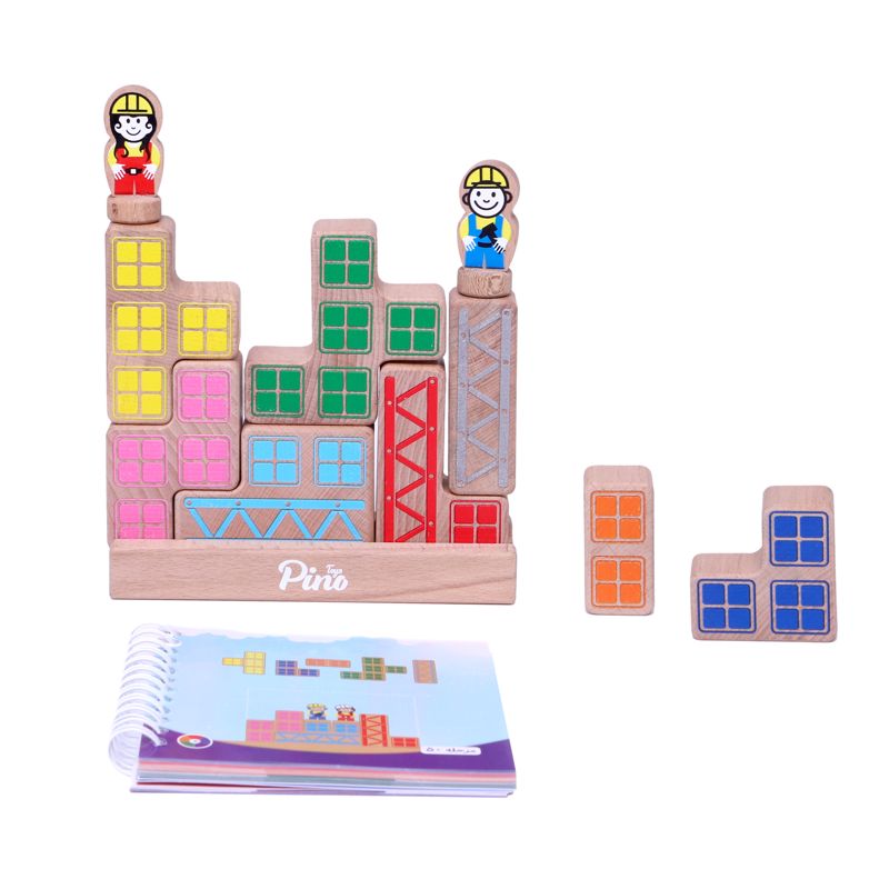 بازی فکری چوبی بلوک چین شامل ۶۰ معمای جذاب و چالشبرانگیز است که به ترتیب از آسان به سخت شمارهگذاری شدهاند. در هر معما باید با توجه به قطعات ارائه شده در دفترچهی بازی یک ساختمان مربع یا مستطیل کامل بسازید و آقای مهندس یا خانم مهندس را طبقه به طبقه به بالای ساختمان برسانید. توجه داشته باشید که معماها را به ترتیب حل کنید تا اعتماد به نفس کودکان تقویت شود. قطعات همگی از چوب طبیعی و رنگهای بیخطر ساخته شدهاند و برای کودکان از ایمنی کامل برخوردار هستند. همراه با این بازی یک کیسهی پارچهای هم برای نگهداری قطعات عرضه شده است.