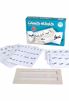 کارگاه کلمات وسیلهای است فوقالعاده برای تمرین شکل نوشتاری کلمات و همچنین ساختن جملهها؛ بخصوص برای آنها که در برابر نوشتن مقاومت میکنند. در این وسیله تمامی شکلهای حروف در ابتدا، وسط و آخر کلمه به صورت کارتهای کوچک و به تعداد کافی وجود دارد. کودک میتواند به راحتی با کنار هم قرار دادن و جایگذاری آنها در شکاف صفحهی کارگاه، تمامی کلمات کتاب فارسی اول ابتدایی و همچنین هر کلمهی دیگری را بسازد و از این راه املای کلمات را به صورت حروف چاپی تمرین کند. با توجه به دو ردیفه بودن صفحه، امکان ساخت جملات کوتاه نیز وجود دارد.