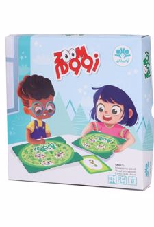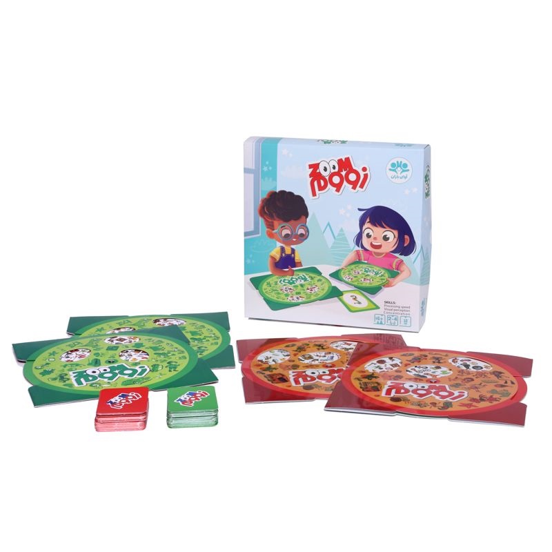 زووم یک بازی مبتنی بر تیزبینی و سرعت تفکر است. در این بازی به هر یک از بازیکنان یک گردونه داده میشود و هر بار یکی از کارتها رو میشود. بازیکنان باید هر چه سریعتر با چرخاندن گردونهی خود تصویر یا تصاویر روی کارت را روی گردونهی خود پیدا کنند. هر کس زودتر تصویر یا تصاویر را پیدا کند، کارت را برای خود برمیدارد. کسی که چشم تیزبینتری داشته باشد، کارت بیشتری جمع خواهد کرد. از دیگر مواردی که این بازی به تقویت آن کمک میکند، میتوان به هوش هیجانی و قدرت تطبیق اشاره کرد. بازی را به دو روش پیدا کردن یک تصویر یا دو تصویر انجام داد.