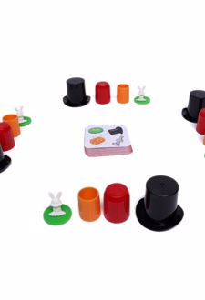 این بازی که با هدف تقویت دقت و تمرکز، چابکی دست و افزایش هوش اجتماعی کودکان طراحی شده، دارای تعدادی وسایل شعبدهبازی شامل کلاه، فنجان، استوانه، سکه و خرگوش است. روش بازی به این صورت است که به هر یک از بازیکنان یک دست وسایل شعبدهبازی داده میشود. کارتهای بازی نیز بر خورده، به پشت در وسط بازی قرار میگیرد. یکی از بازیکنان یکی از کارتها را رو میکند و همهی بازیکنان بایدبه سرعت وسایل خود را طبق کارت طوری روی هم بچینند که: وسایل رنگی روی کارت دیده شوند، وسیلهی خاکستری دیده نشود و از وسیلهای که در کارت نیست، در چیدمان استفاده نشود.کسی که زودتر از همه وسایلش را طبق کارت بچیند، کارت را به عنوان امتیاز برای خود برمیدارد و کارت بعدی را رو میکند.