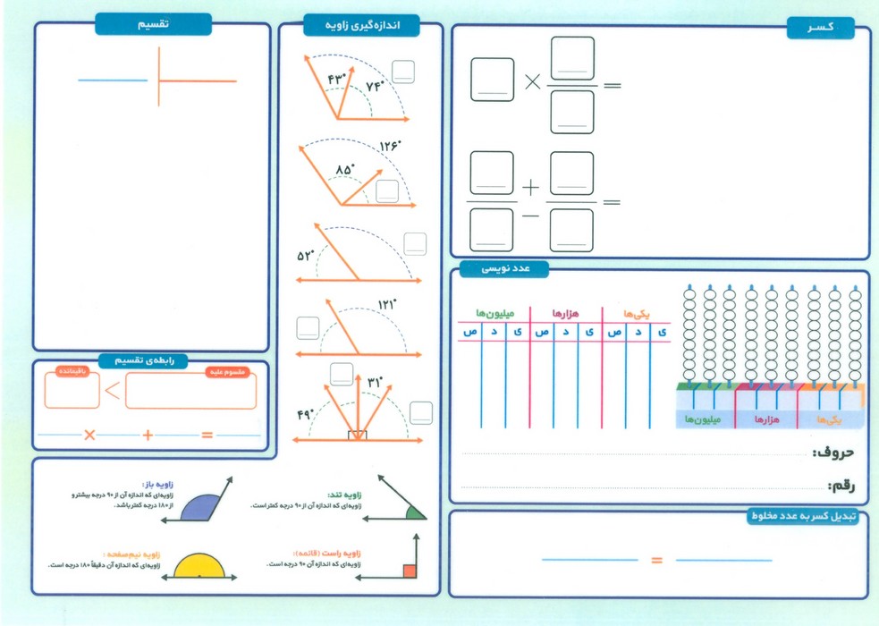 دسته بندی های کتاب ریاضی چهارم دبستان A4
